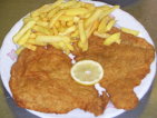 | Herrenschnitzel mit Pommes frites und Salatteller | kleine Portion 11,90 EUR Portion 13,90 EUR |
